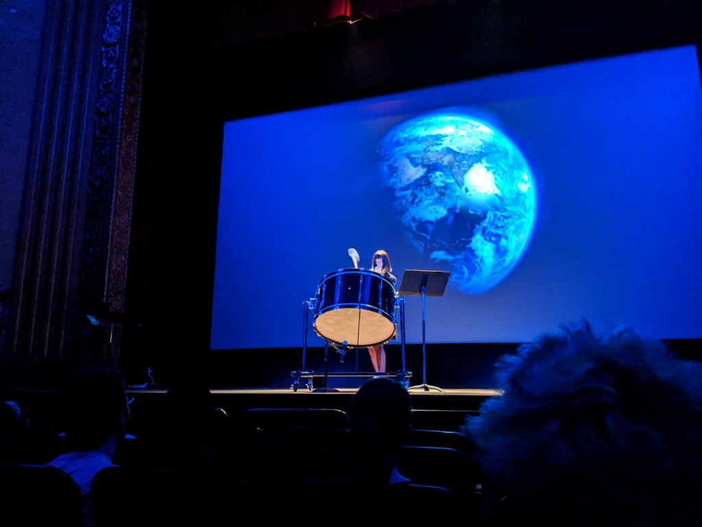 Their talk started with a bass drum piece whose score was written by the number and intensity of earthquakes around the world from 1976 to 2019. Each year got 10 seconds.